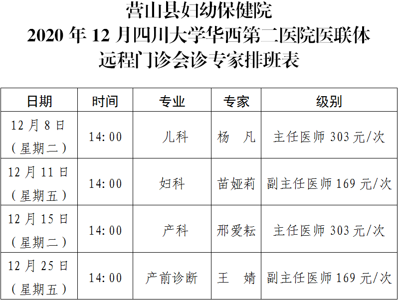 3.营山县妇幼保健院的初诊属于正常的医疗活动,不属于远程门诊会诊范畴,将按照国家规定的门诊收费标准收取相关费用。